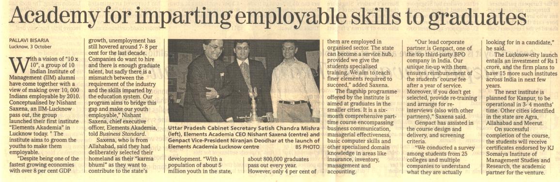 You are here:Home/In Media/Business Statndard-Launch